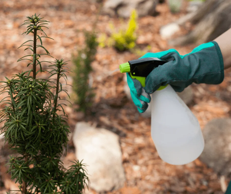 - Iš maisto produktų, tai dažnai naudojami česnakų ar svogūnų lukštai, garstyčios, apelsinų žievelė, aitrieji pipirai, kurie yra lygiai taip pat susmulkinami, užpilami vandeniu ir palaikomi vieną dieną. Vėliau galima turimą tirpalą dar skiesti ir purkšti augalus.