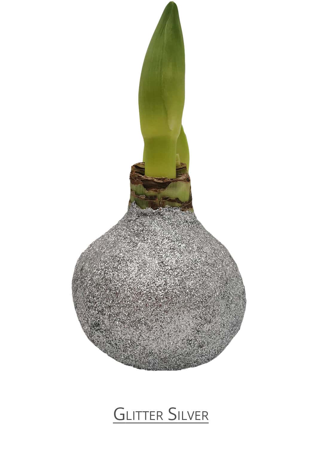 Svogūnas aplietas vašku, spalva: glitter silver. Turi pastatymui vielos atramą.