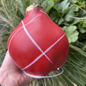 Kiekvienas svogūnas kruopščiai paruoštas ir gali pražysti savaime, išaugindamas 1–3 tvirtus žiedkočius, ant kurių susiformuoja po 3–5 didelius, ryškiai raudonus žiedus. Žydėjimas trunka kelias savaites, o bendra augalo estetika puikiai dera prie šventinio ar modernaus interjero.