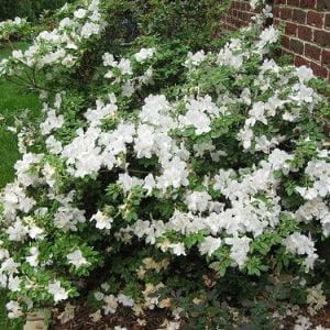 Azalija (Rhododendron hybr. ‘White Lights’). Per 10 metų išauga iki 1,5 m. aukščio ir 1,50 m pločio. Žydi gegužės mėn. Vasaržalis augalas, žiemai numetantis lapus. Dirvožemis lengvas (durpžemis, priesmėlis) rūgštus – silpnai rūgštus. (pH 3,5-4,5)