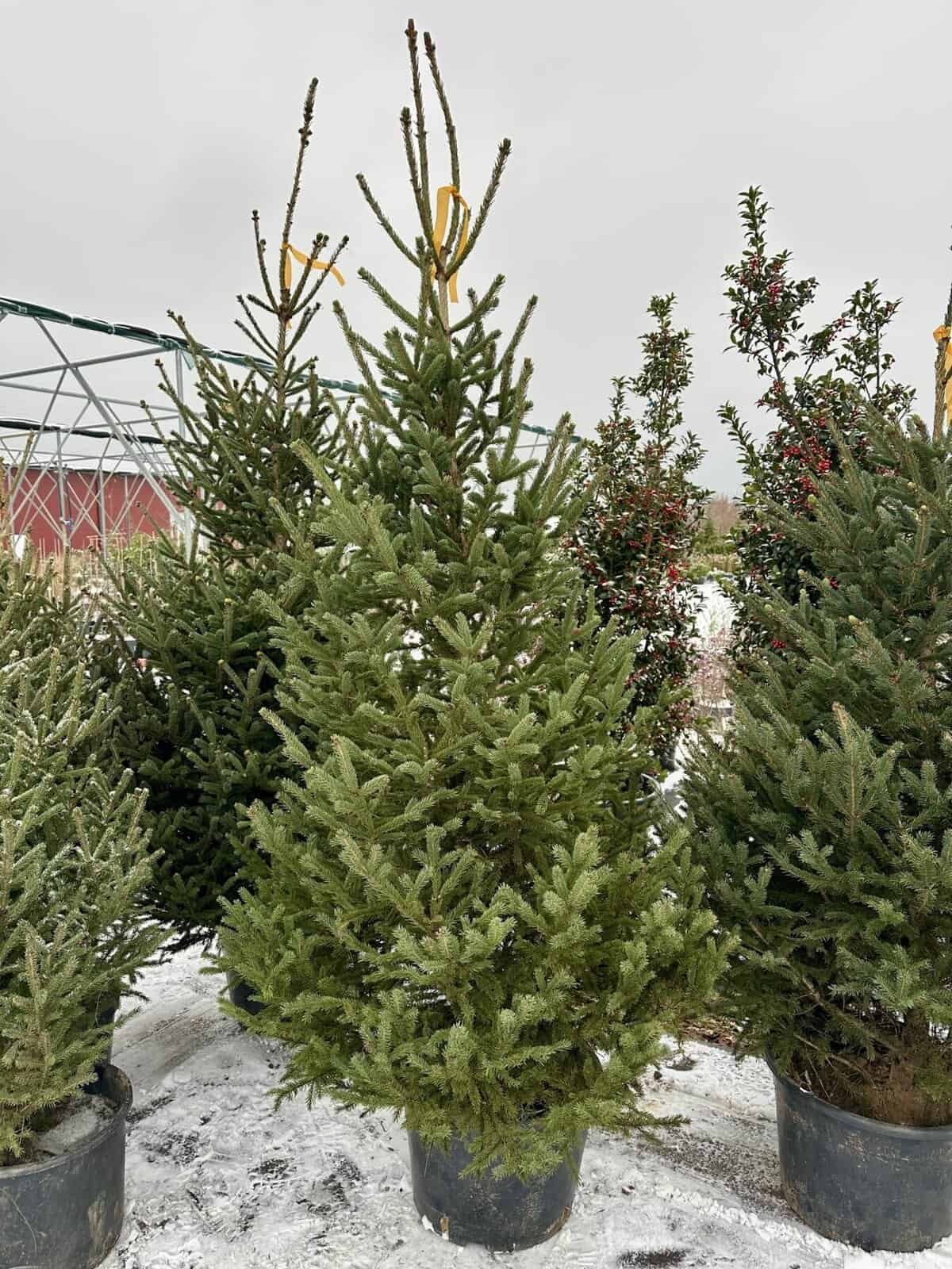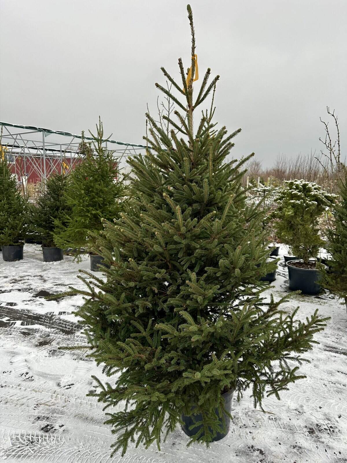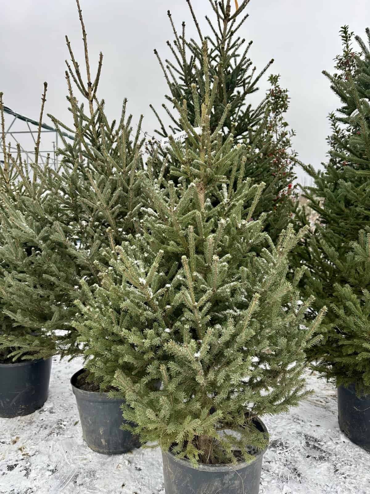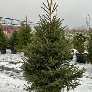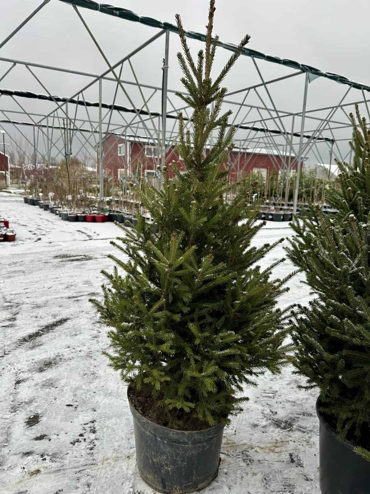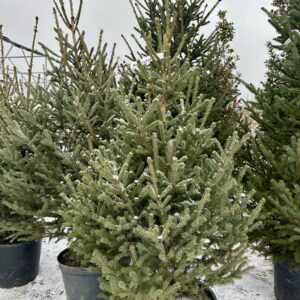 Baltoji eglė (Picea glauca) – viena populiariausių gyvų Kalėdinių eglučių dėl savo kompaktiškos, taisyklingos piramidinės formos, tankių melsvai žalių spyglių ir puikaus atsparumo šalčiui. Vazone ji išlaiko šviežią išvaizdą visą šventinį laikotarpį, nesilupa, neskilinėja ir mažai barsto spyglius.