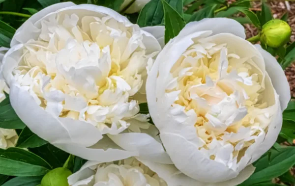 Žydi pavasario pabaigoje, kurių metu išskleidžia ilgi, kvapnūs, baltai kreminiai, dvigubi žiedai – žymiai dekoratyvūs tiek lauke, tiek vazoje . Žiedų skersmuo siekia 12–15 cm.