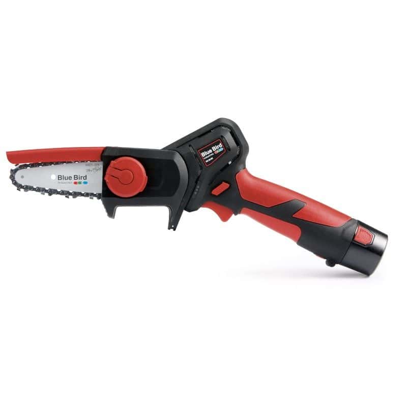 Akumuliatorinis grandininis pjūkliukas Blue Bird CS 22-04 komplekte kartu su dviem 12.6V, 2.5 Ah akumuliatoriais ir įkrovikliu.