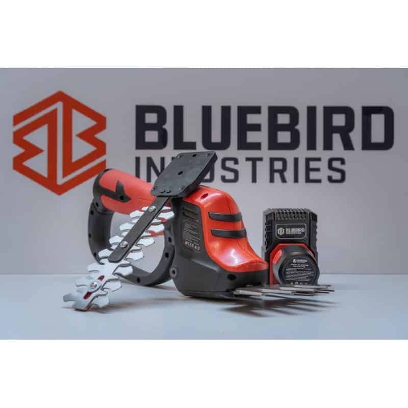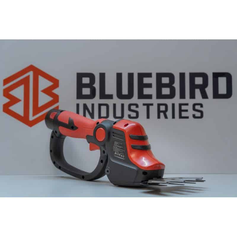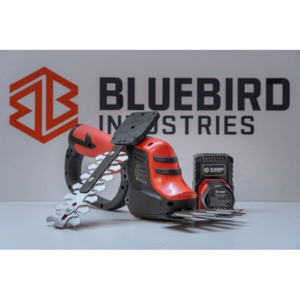 Akumuliatorinės žolės ir gyvatvorių žirklės Blue Bird GC 22-10 komplekte kartu su 12.6V, 2.5 Ah akumuliatoriumi ir įkrovikliu.