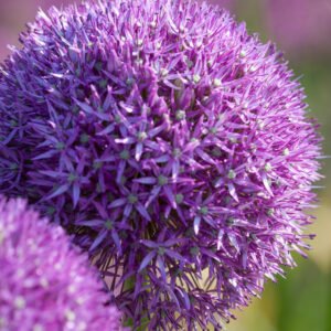 Nereiklus daugiametis dekoratyvus augalas. Formuoja tuščiavidurių, siaurų lapų skroteles. Ant tiesių aukštų stiebų viršuje stūkso rutulio formos violetinis žiedas, kurio skersmuo siekia 15-17 cm.