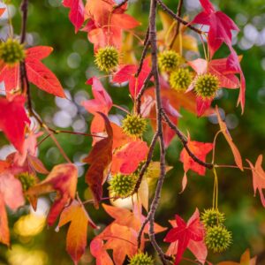 Liquidambar styraciflua – įspūdingas dekoratyvinis medis, vertinamas dėl išskirtinių rudens spalvų. Žvaigždiškos formos lapai rudenį nusidažo intensyviais raudonais, oranžiniais, purpuriniais ir net violetiniais tonais, todėl medis tampa vienu ryškiausių akcentų sode.