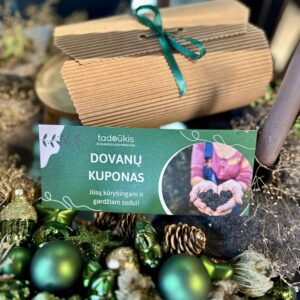 Turite artimą žmogų kuriam patinka augalai ir dienų dienas leidžiantį laiką sode? Suki galvą ką padovanoti? Žiemos metu, sutinkame, tai didelis iššūkis išpildyti šį pomėgį. Tačiau turime puikią dovaną – kvietimą Jūsų artimąjam užsiauginti savo egzotišką sodą jau šį sezoną! Su šiuo dovanų čekiu suteiksite progą apdovanotam asmeniui pačiam išsirinkti norimus sodo ir dekoratyvinius augalus. Kuponas taip pat galioja ir apželdinimo ar sodo priežiūros konsultacijoms. Kuponą rasite specialioje dėžutėje, kurioje dovanų pridėsime ir tikro sodininko šaukštelius – nes užaugintas savas derlius skaniausias… 🙂 taip pat, yra galimybė gauti ir PDF kuponą, kurį galėsite nusiųsti kitam žmogui arba atsispausdinę padovanoti. Belieka užsimerkti ir įsivaizduoti, kas galėtų labiausiai pradžiuginti… Draugai ar artimieji neliks abejingi parodytam Jūsų rūpesčiui ir laisvei rinktis širdžiai mieliausią dovaną.