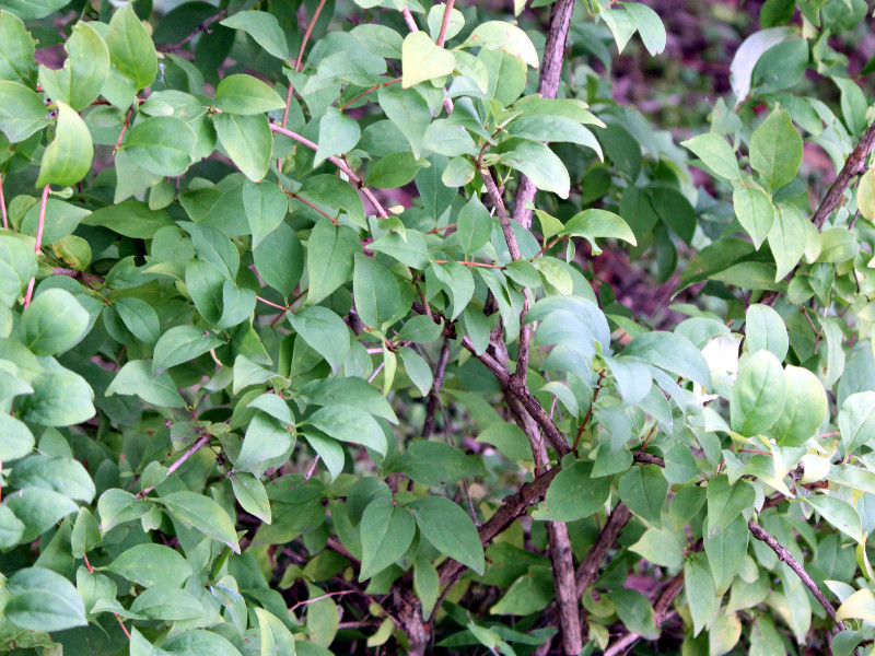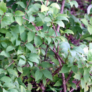 Po žydėjimo išsiskleidžia žali, ovalūs lapai, kurie rudenį gali nusidažyti purpuriniais ar bronziniais atspalviais. Krūmas auga vidutiniškai greitai, formuoja tankų, šiek tiek išsiskleidusį vainiką.