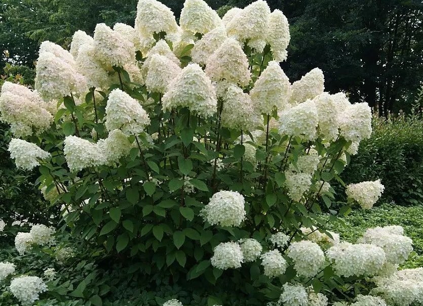 Šluotelinė hortenzija (Hydrangea paniculata) ‘Phantom’ – viena iš stambiažiedžių hortenzijų veislių, garsėjanti savo įspūdingo dydžio ir tankiais žiedynais. Liepos mėnesį augalas pasipuošia masyviais, iki 30 cm ilgio, kūgio formos žiedynais. Žiedai pradžioje būna kreminiai balti, o vasaros pabaigoje ir rudenį palaipsniui įgauna švelniai rausvą atspalvį.