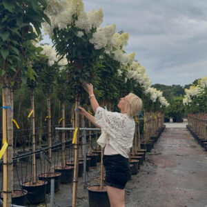 Hydrangea paniculata ‘Phantom’ – labai dekoratyvi hortenzija, išsiskirianti dideliais šluoteliniais žiedynais ir išraiškingu spalvų pokyčiu sezono metu. Kremiškai baltos šluotelės vasaros pradžioje palaipsniui pereina į rožinius atspalvius, suteikdamos sodui spalvinį dinamizmą nuo liepos iki rugsėjo pabaigos. Stiebai tvirti, palaiko žiedynus vertikaliai – žiedai nesugula po lietaus ar sniego.