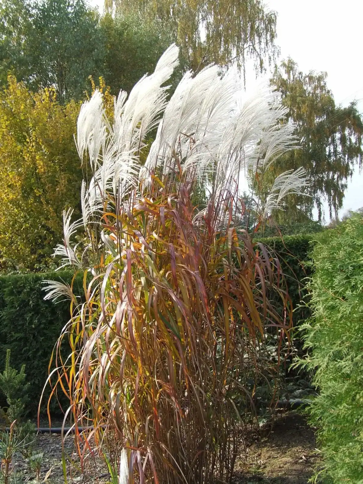 Žiedai: gausios, rausvai rožinės, vėliau sidabriškai šviesėjančios šluotelės