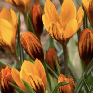 Tai sodriai oranžinės spalvos krokai. Pražysta anksti pavasarį kovo – balandžio mėn. Jų aukštis 10 cm.