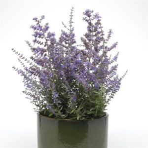Pusiau sumedėjęs nereiklus daugiametis augalas. Pasižymi kompaktiškesne kero forma. Efektingai ir elegantiškai atrodo sodrios melsvos (žiedai) ir pilkos spalvos (lapai) derinys. Lapai kvepia.