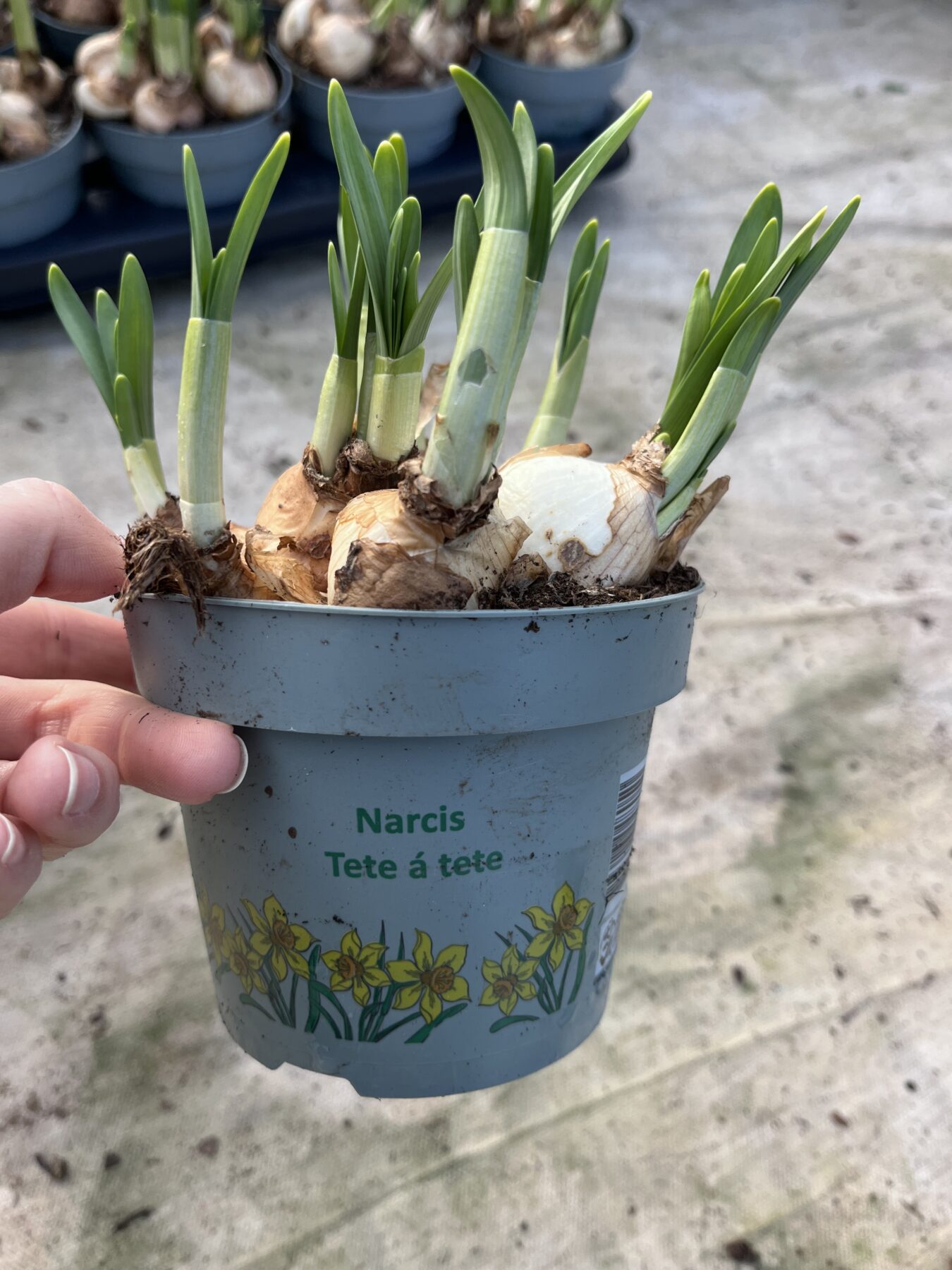 Tai trijų skirtingų narcizų veislių rinkinys vazonėliuose: ‘Tête-à-Tête’, ‘Jetfire’ ir ‘Iwona’. Kiekvienas vazonėlis turi vieną konkrečią veislę – augalai nėra sumaišyti, todėl galima lengvai derinti kompozicijas pagal spalvas ir aukštį.