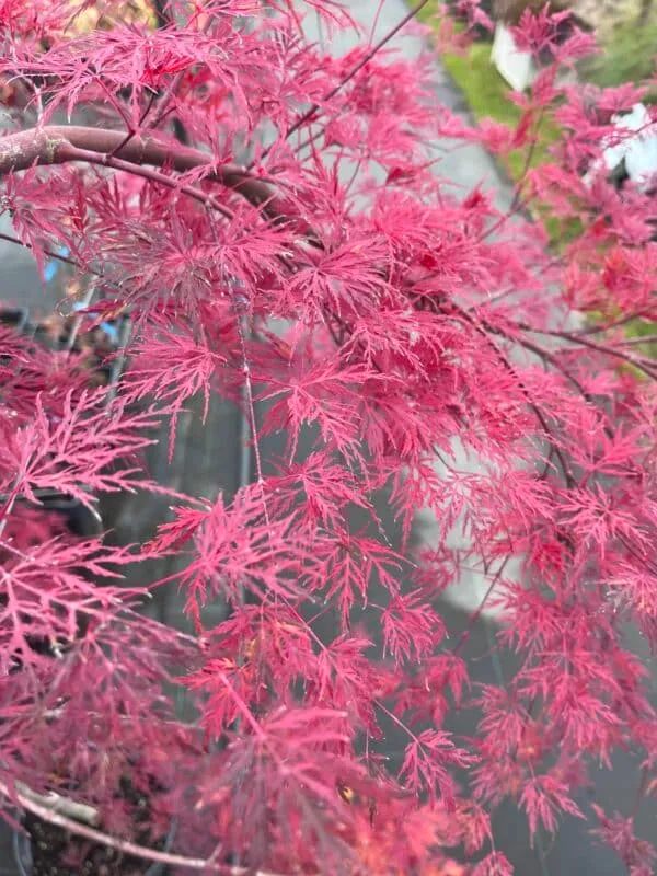 Lapų spalva yra pagrindinis šio medžio traukos taškas. Pavasarį ir vasaros pradžioje lapai yra tamsiai raudonos ar bordo spalvos, o rudenį jie ryškiai raudonėja, sukuriant neįprastą spalvų transformaciją per sezonus. Smulkiai karpyti lapai ne tik atrodo subtiliai ir elegantiškai, bet ir suteikia švelnų, ažūrinį efektą.