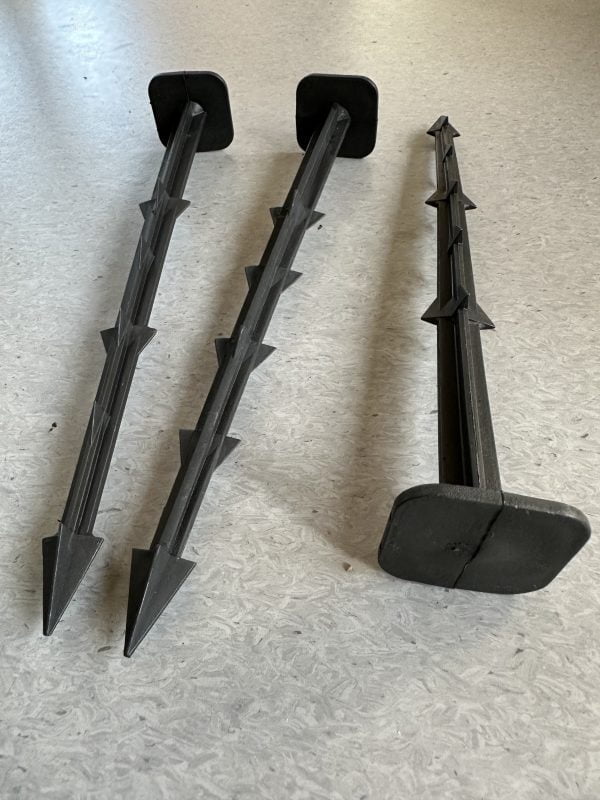 Plastikinės smeigės su tvirtinimo galvutėmis skirtos tvirtinti austinės, neaustinės agro tekstilės bei geotekstilės tvirtinimui prie pagrindo. Tvirtinimo galva efektyviai prispaudžia tekstilę prie žemės, neleisdama jai pakilti ir slysti. Pagaminti iš 100% perdirbtų medžiagų.