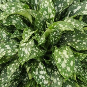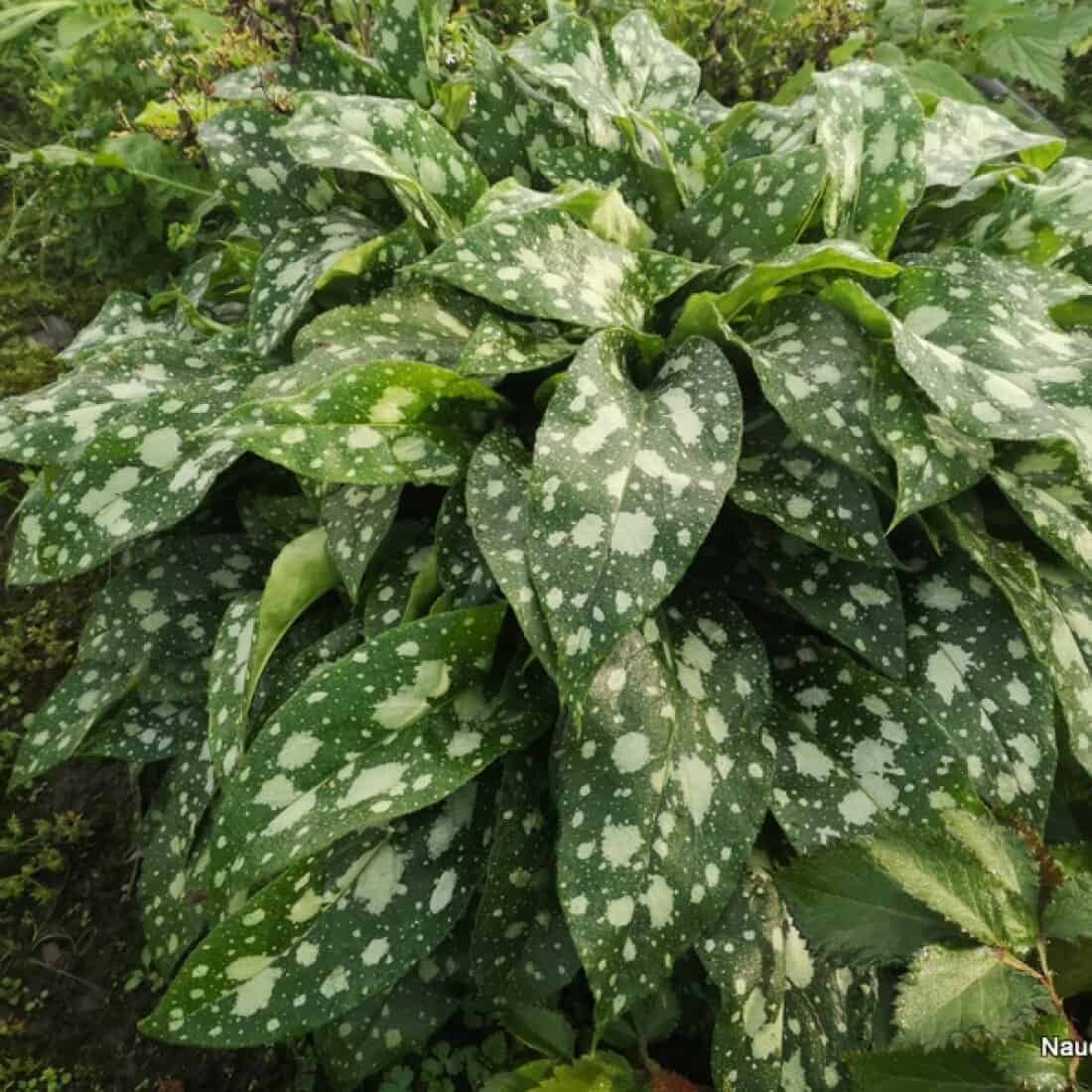 Lapai stambūs, tamsiai žali, gausiai nusėti sidabrinėmis dėmėmis, todėl augalas dekoratyvus net ir po žydėjimo. Kerelis tankus, greitai plečiasi, užaugina iki 40–50 cm pločio kupstą.