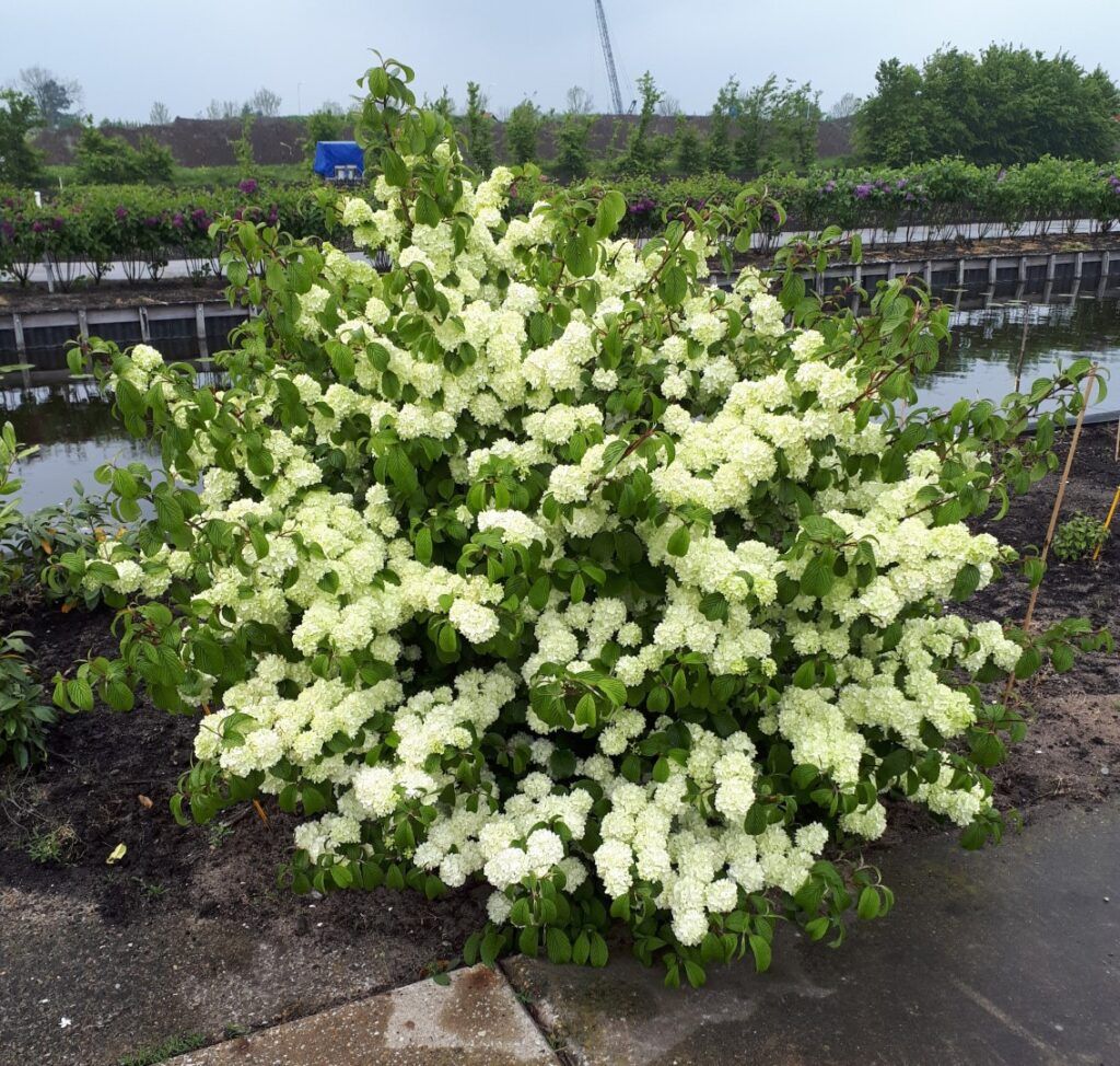 Krūmas auga taisyklingos, plačiai ovalios formos, pasiekia iki 2 m aukštį ir plotį. Pavasarį šakas gausiai dengia plokšti, balti žiedynai, kurie atrodo kaip sniego debesys – žydėjimo metu augalas tampa tikru sodo akcentu. Žydėjimas tęsiasi ilgai, dažnai iki birželio pradžios.