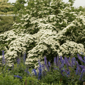 Žiedai: labai stambūs, balti, gausūs, dažnai dengia visą lają, vėliau pereina į kreminius atspalvius