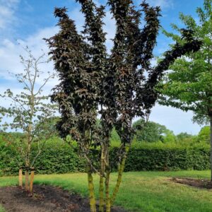 Augalas užauga iki 2–3 m aukščio, 1–1,5 m pločio, todėl puikiai tinka ribotoms erdvėms, siauriems sodams ar kaip vertikalus akcentas gėlynuose. Dėl savo spalvos ir formos ‘Black Tower’ dažnai naudojamas kaip kontrastingas elementas šalia šviesialapių ar dekoratyviai žydinčių augalų.