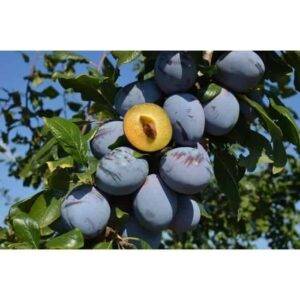 Vaisiai: dideli, ovalios formos. Odelė sodriai mėlynos spalvos. Minkštimas gelsvos spalvos, tvirtas, saldus, sultingas, aromatingas. Kauliukas lengvai atsiskiria nuo minkštimo. Tinka šviežiam vartojimui, transportavimui ir perdirbimui.