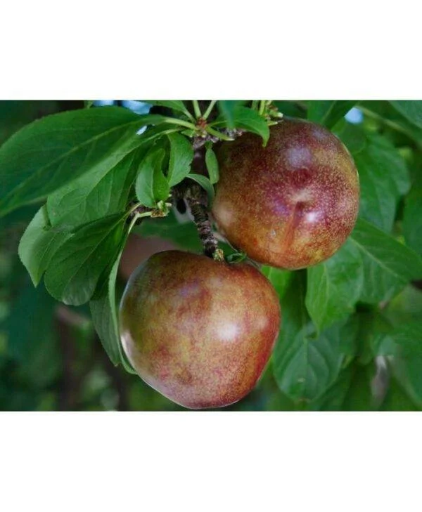 Vaisiai labai dideli (sveria spie 100 g), suapvalinti, žaliai pilkos spalvos su raudonais taškeliais. Minkštimas yra bordo raudonumo, labai sultingas, švelnus, labai aromatingas, vidutinio tankio, desertinio skonio, kuriame yra minimalus rūgšties kiekis. Veislė pripažinta kaip pati saldžiausia slyvos ir abrikoso hibrido veislė. Vaisiai sunoksta rugpjūčio mėnesį.