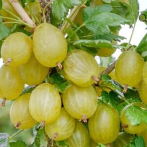 Uogos: didelės, apvaliai pailgos formos. Odelė plona, pilnai sunokusių uogų permatoma, žalsvai geltonos spalvos. Desertinės, labai gero skonio, saldžios, aromatingos. Sunokę uogos netrūkinėja ir nenubyra nuo krūmo. Tinka šviežiam vartojimui, transportavimui ir perdirbimui.