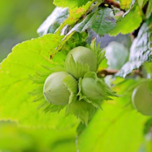 Vaisiai: riešutai susitelkę kekėse po 5 – 8 vienetus, smulkesni už paprasto lazdyno. Labai dekoratyvūs dėl ilgos, giliai iškarpytos goželės.
