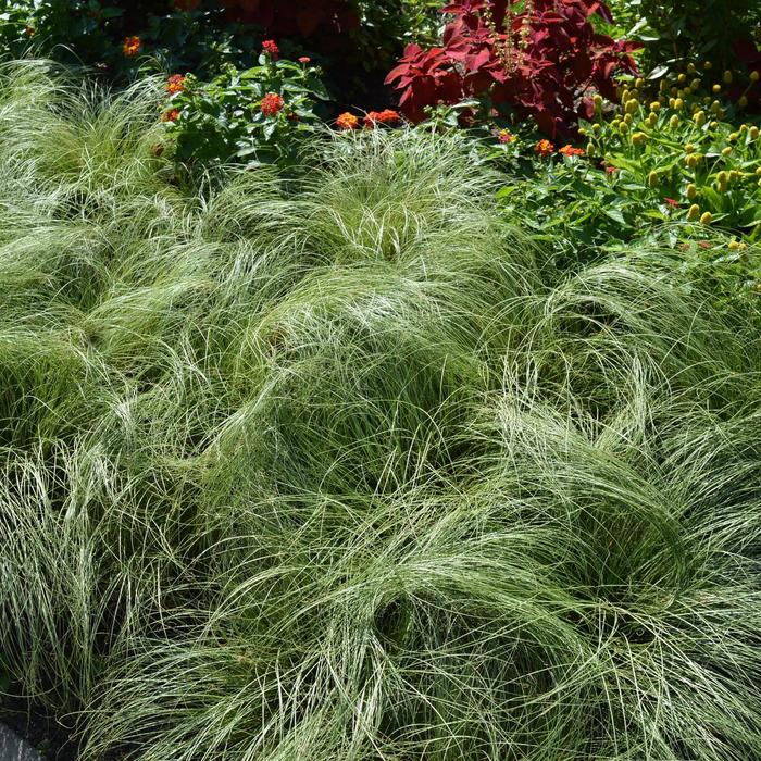 Viksva ‘Amazon Mist’ – elegantiška dekoratyvinė žolė, išsiskirianti švelniai svyrančiais, pilkšvai žalsvais lapais su subtiliu sidabriniu atspalviu. Dėl savo lengvos, „rūko“ primenančios tekstūros augalas suteikia želdiniams minkštumo ir judesio.